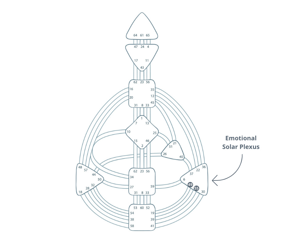 Remember what i said about gates and channels? There are two specific gates in the ESP that are responsible for its mutation: the 49th (keywords of Reaction, Revolution, and Rebirth) and the 55th (keywords of Victimization and Freedom).